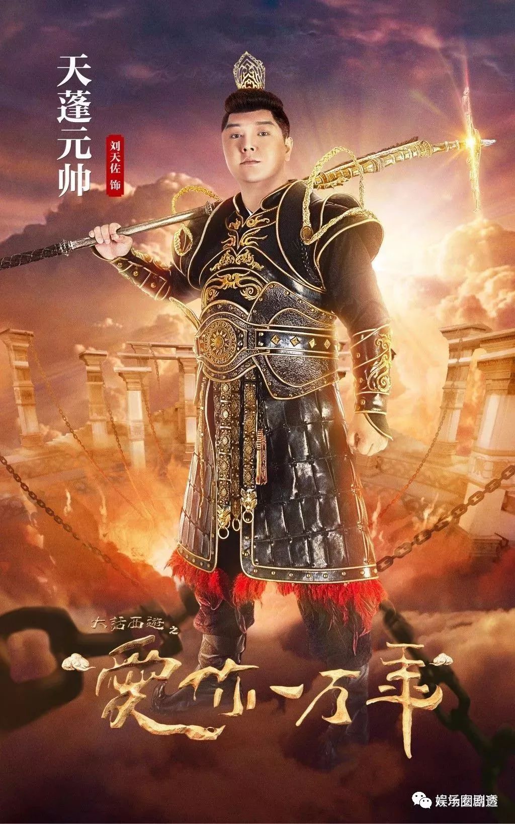 在之前曝光的海报中,刘天佐饰演的“天蓬元帅”身着金丝刺绣铠甲,一手握拳,一手搭着通天法器,威武高大,霸道又帅气!