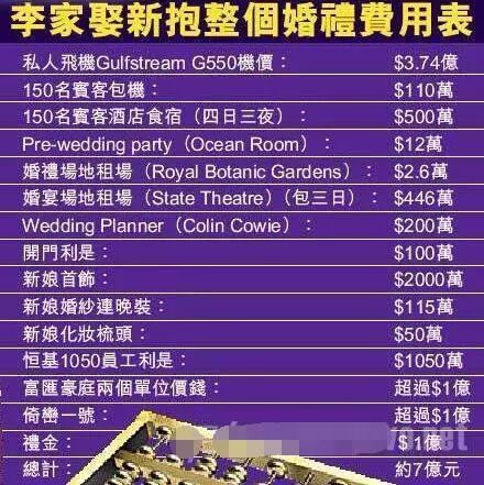 嫁入豪门的徐子淇那时候只有24岁,她和李家诚的世纪婚礼在悉尼国家大剧院举行,光飞机一项就花了3个多亿!总费用据传是花了7亿!