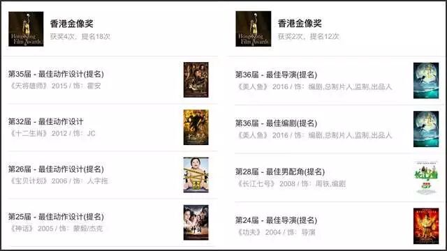 两人的不完全获奖名单(截图来自猫眼电影库)