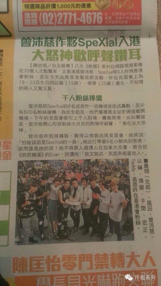 八大《终极系列》缔造网络视频近30亿人次超高点击率,主要演员曾沛慈与SpeXial挟带《终极》所带来的热潮与魅力,这次难得合体齐赴港。此次他们除了将参加香港电视节活动外,特别挪出时间在商场举办见面会。