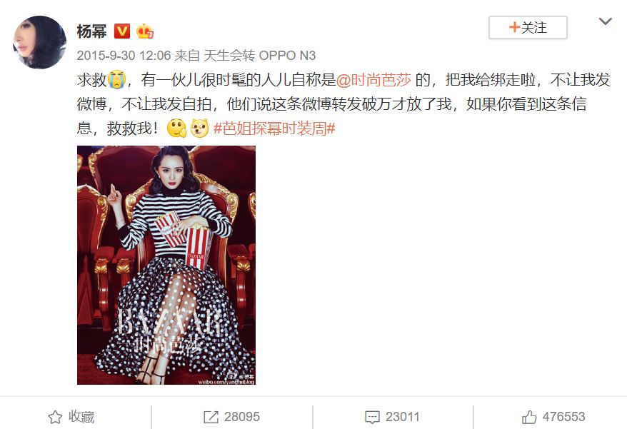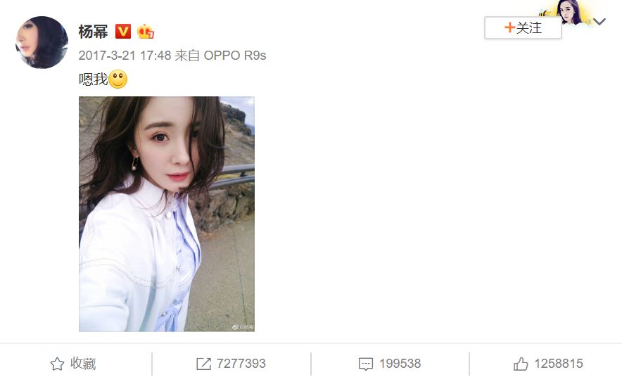 所以当你看到当年那个“哭着”求转发的杨幂,现在随随便便发个自拍,都能获得700多万转发时,就会不自觉露出微笑。