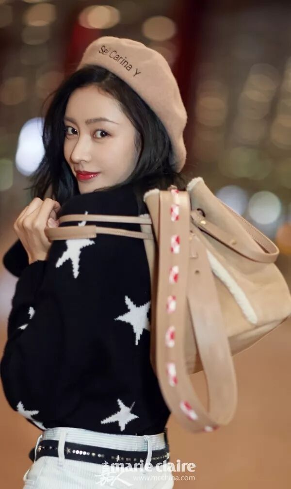 对于黑白搭配的时尚要点,张天爱也表现的很凸出,看她戴卡其色呢子贝雷帽和身穿印花星星图案黑色粗线毛衣融合出甜美的法式风情,而在配饰包包的选择上也搭配了和帽子同色的卡其,这样达到了颜色的呼应,造型温暖又前卫。