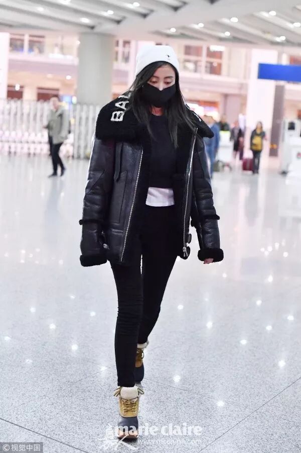 感受到最近急剧下降的气温,张天爱开始穿上保暖又彰显时髦的羊羔毛机车外套,看来即便是厚重感的冬天都挡不住她对机车皮衣的喜爱~她头戴时髦保暖的白色针织毛线帽,黑色口罩遮面,身穿黑色毛衣叠穿白色T恤彰显高级感,黑色毛领机车羊羔毛外套加身,酷感值满格,下穿的黑色紧身铅笔裤衬托长腿比例,松糕运动鞋尽显休闲时尚。