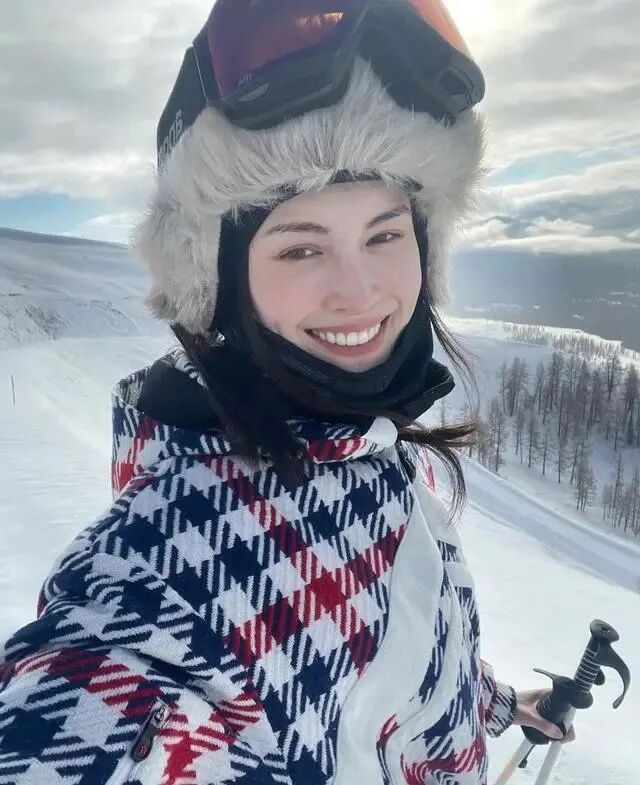 何穗虽然在身高上占据了优势,但是她选择的滑雪服款式也是很值得借鉴的,从款式、元素、搭配手法都很显时髦感,一双大长腿占据了一半的屏幕,真是让人羡慕不已,何穗在白雪皑皑的雪地上,踩着滑雪板帅气十足,头上毛茸茸的帽子可爱又时尚,尽管是素颜状态也很惊艳!