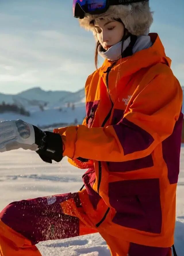 大部分滑雪服都是以连体款式为主,所以我们就要学会利用收腰设计的滑雪服,从而去凸显出小蛮腰,避免过于臃肿的效果,收腰设计可以将重点转移至腰部,塑造身材比例美到,提升大长腿的即视感,这一点也是何穗选择滑雪服显得很高的原因。