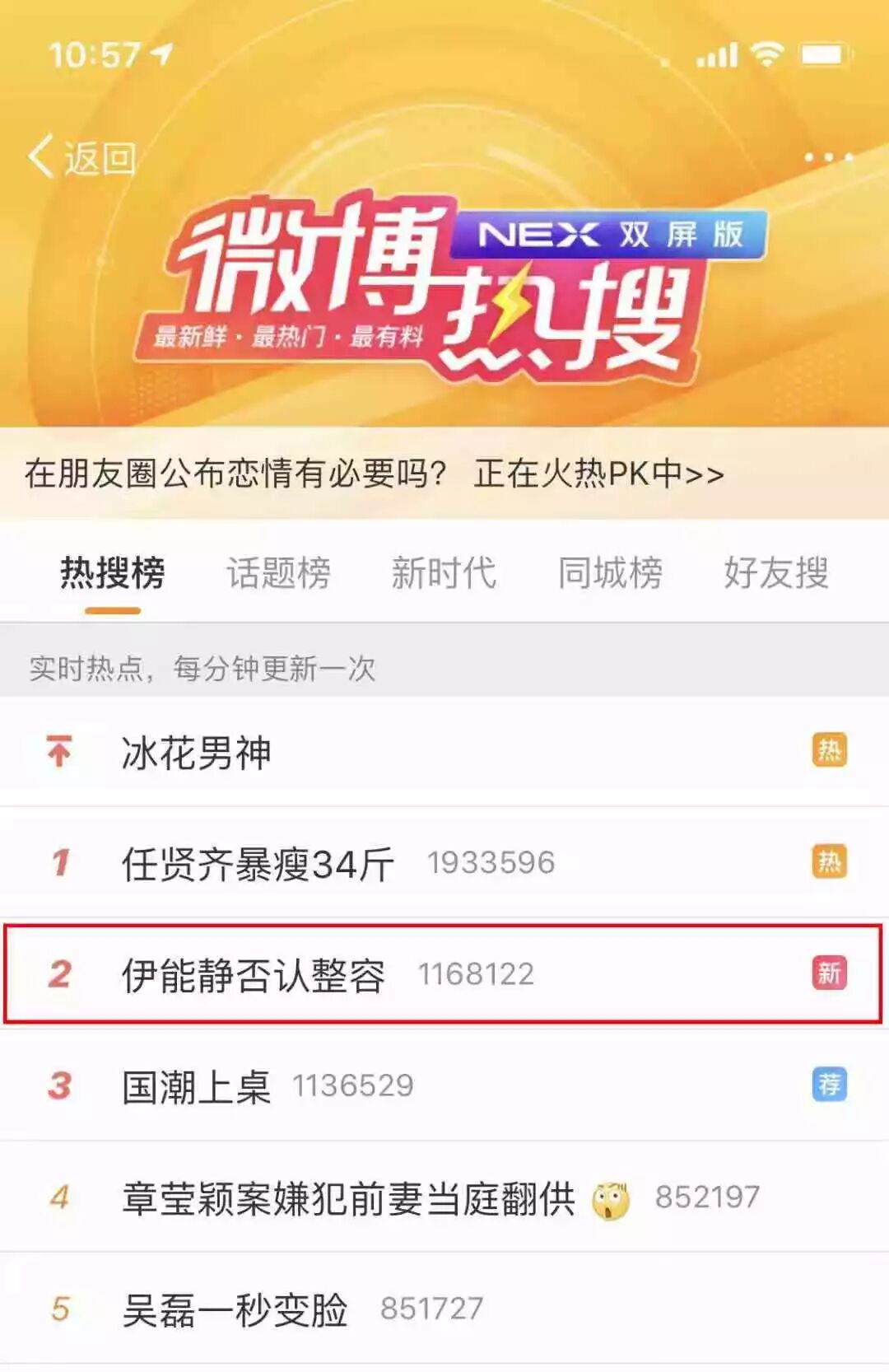 登上了热搜榜第二名