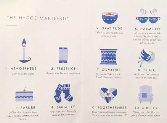 这个词儿,其实是丹麦语,虽然这个北欧国家一年里有一半是冬天,而且每天有17个小时天儿都是黑的,按理说得抑郁,但是丹麦人心大,完全没把这当事儿,幸福指数常居世界之首。