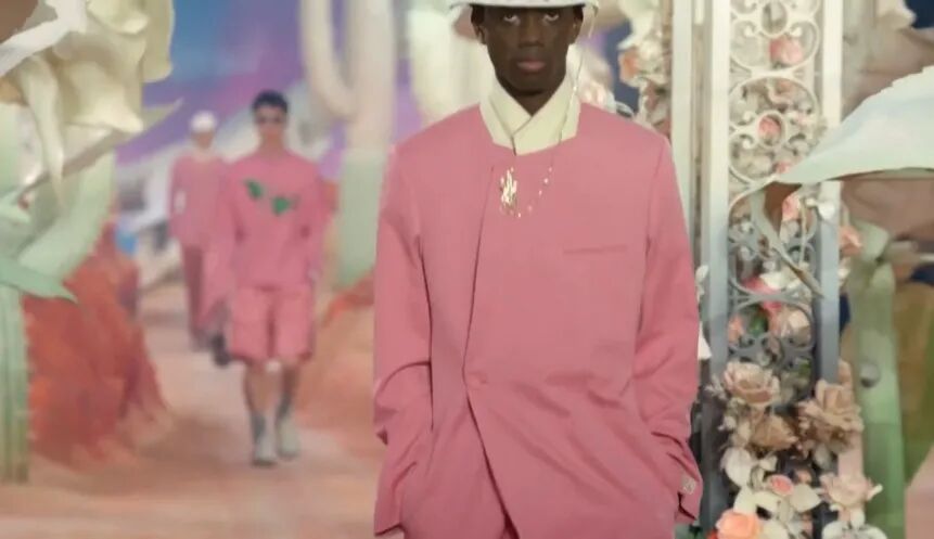 咖啡色、果绿色是Travis Scott作品中标志性的色彩。粉色、浅蓝、浅紫这些梦幻色调则撷自Dior先生高订时装礼服作品的颜色。这些构成了这个系列的色彩主基调。