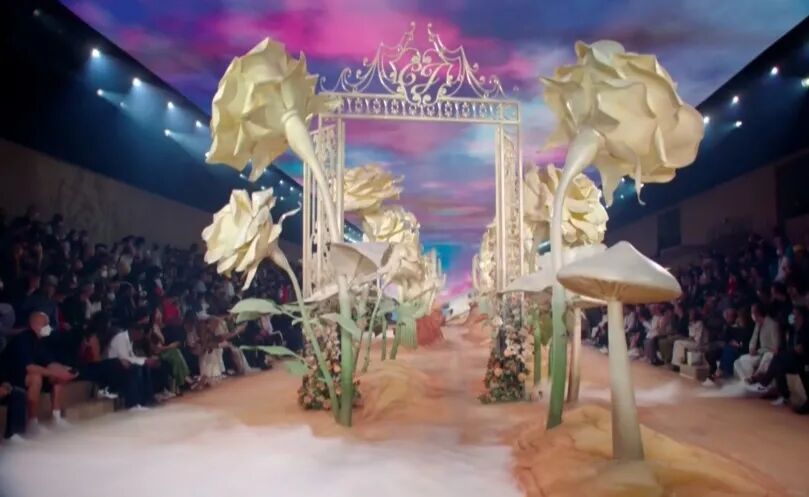 秀场经过精心设计,将Christian Dior先生童年的玫瑰园幻化为仙人掌花园。
