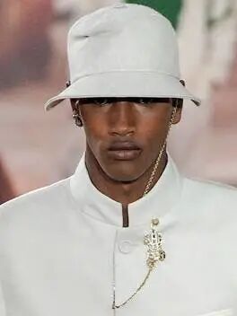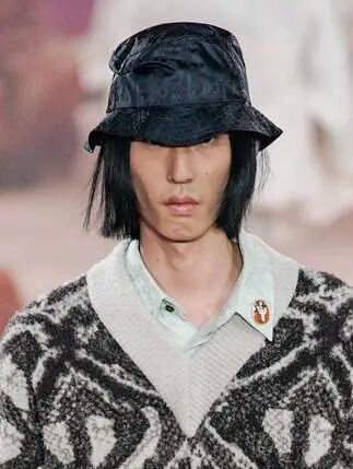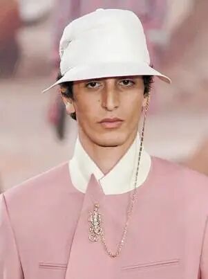 Stephen Jones 设计的帽饰则将法式渔夫帽与美式无边便帽融为一体,是文化融合的又一体现。