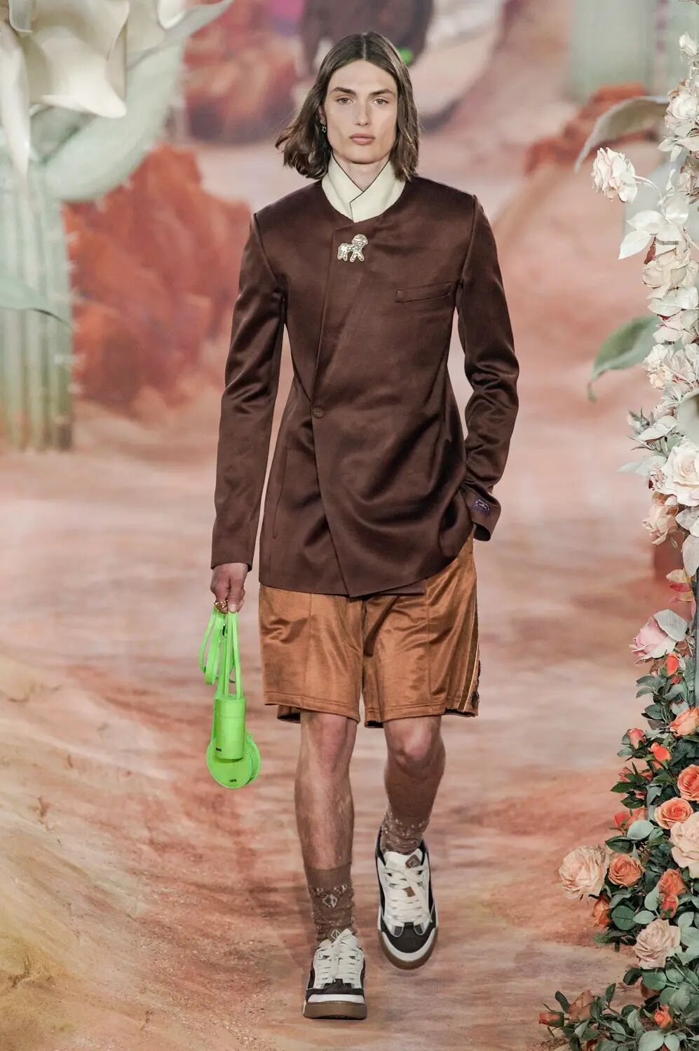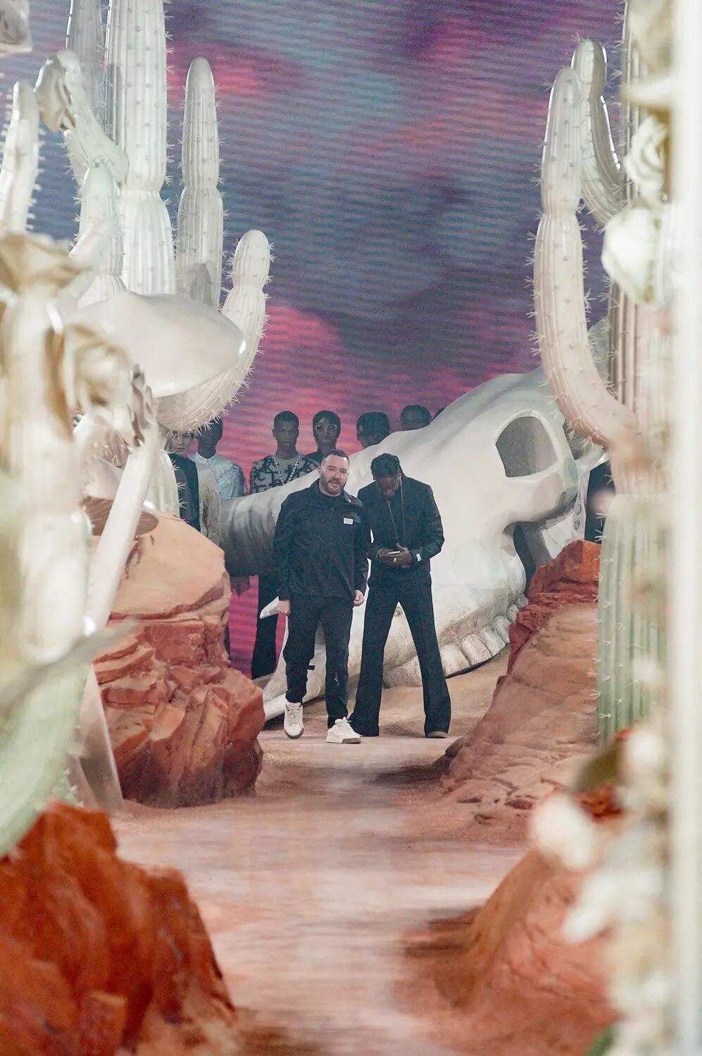 1947年,Christian Dior先生携首个时装系列来到美国,德克萨斯州便是他的首站之一。宏伟壮丽的大峡谷和雄浑广阔的沙漠,令DIOR MEN 艺术总监 Kim Jones 备受灵感启发,他便邀请了出身于德克萨斯的说唱歌手、词曲创作人兼音乐制作人 Travis Scott共同打造DIOR MEN 2022夏季男装系列“CACTUS JACK DIOR”,该系列得名自Scott 的独立唱片厂牌“Cactus Jack”。