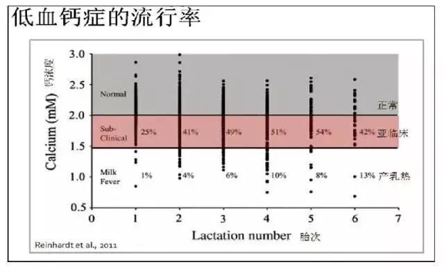 亚临床低血钙症是指奶牛的血钙浓度低,但没有产乳热临床表现,不好诊断。患有亚临床低血钙症的牛只,由于免疫功能抑制,会发生更多疾病,造成产奶量下降,繁殖性能下降。