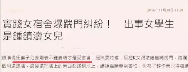 钟嘉晴21岁那年与同学闹矛盾被爆上头条,钟镇涛还没表态,范姜就火速发声灭火,母女一条心。