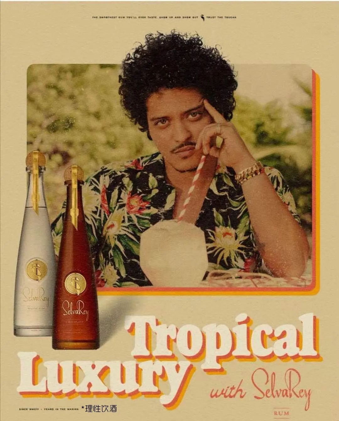 SeIvaRey 兰姆酒由 Bruno Mars多年策划,并以品牌创意总监的身份主导了瓶身设计以及品牌定位宣传的方方面面。
