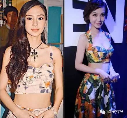 同样是吊带碎花套裙,上围丰满的李菲儿更显诱人,盘起头发立显性感锁骨,而baby应该也只有蛮腰吸引人吧~