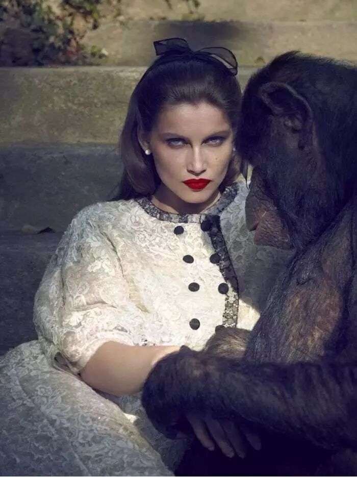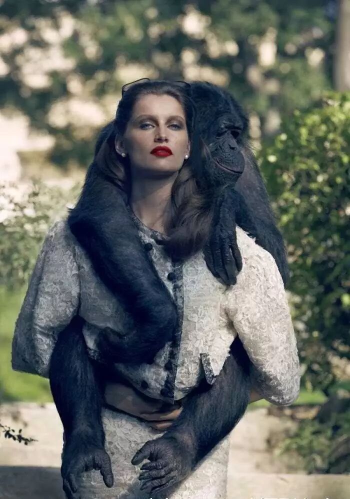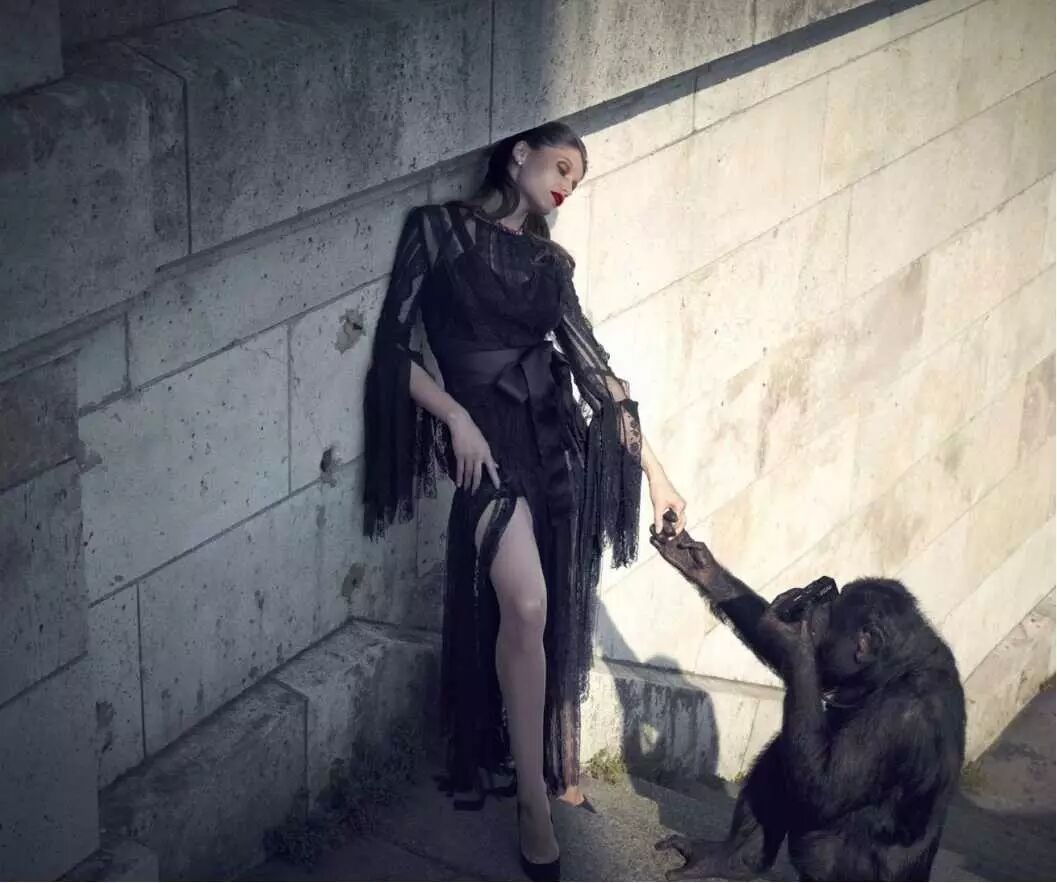 主角是由法国超模莉苔希娅-考斯特(Laetitia Casta)+猩猩一起演出!