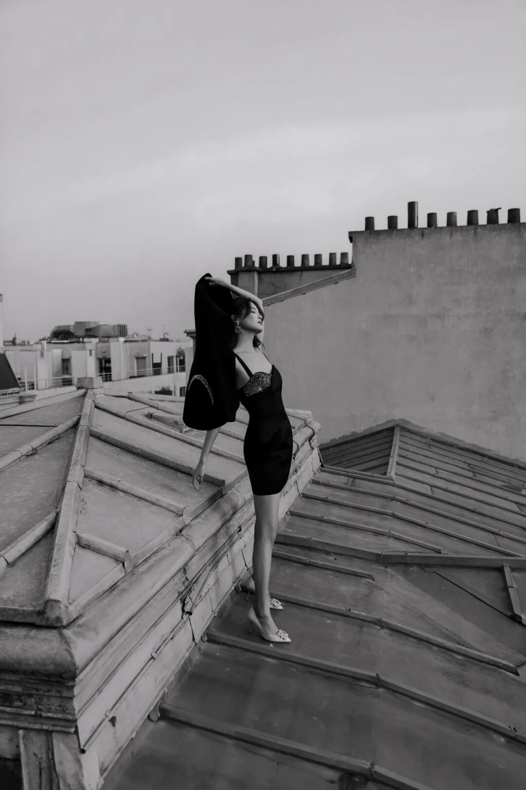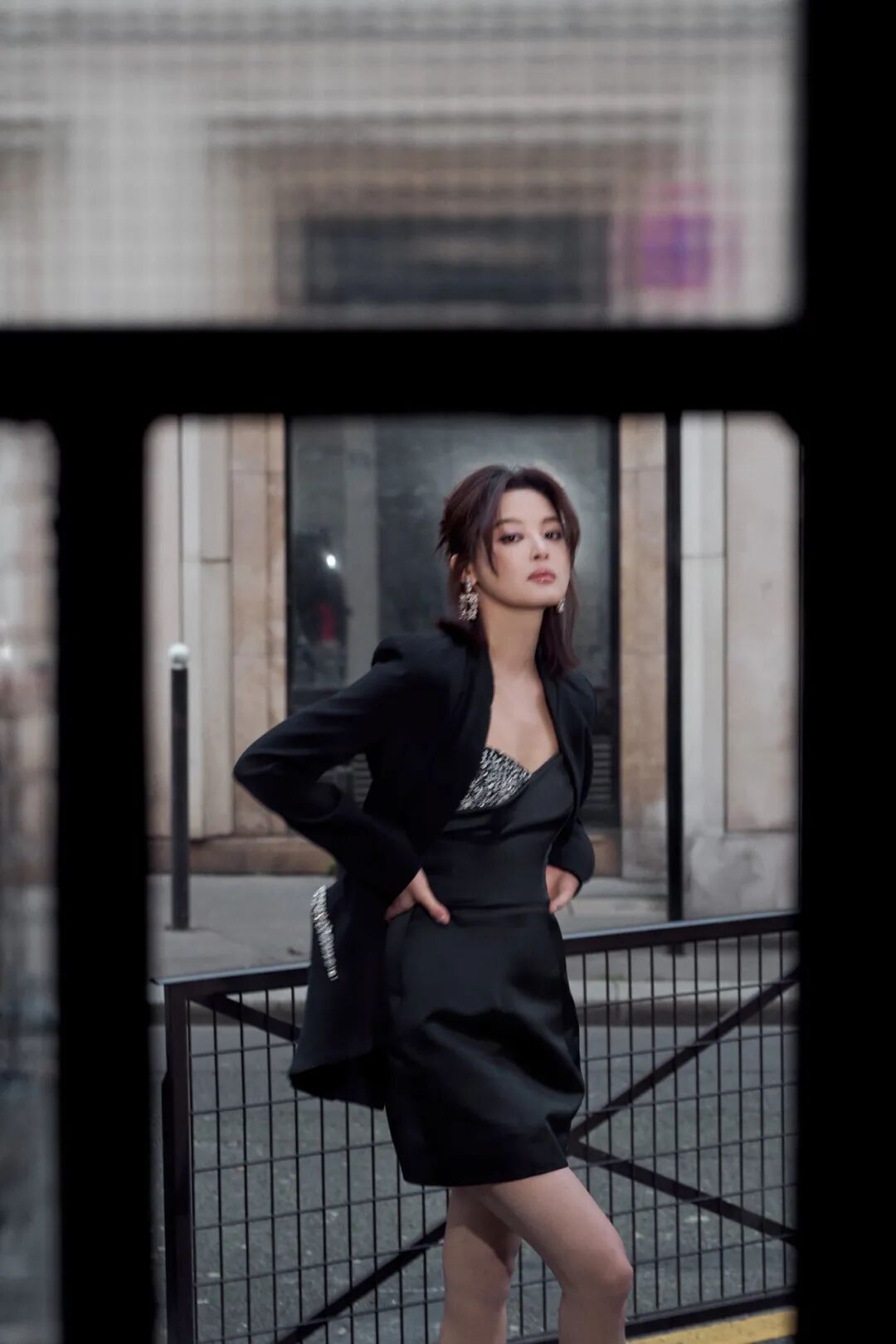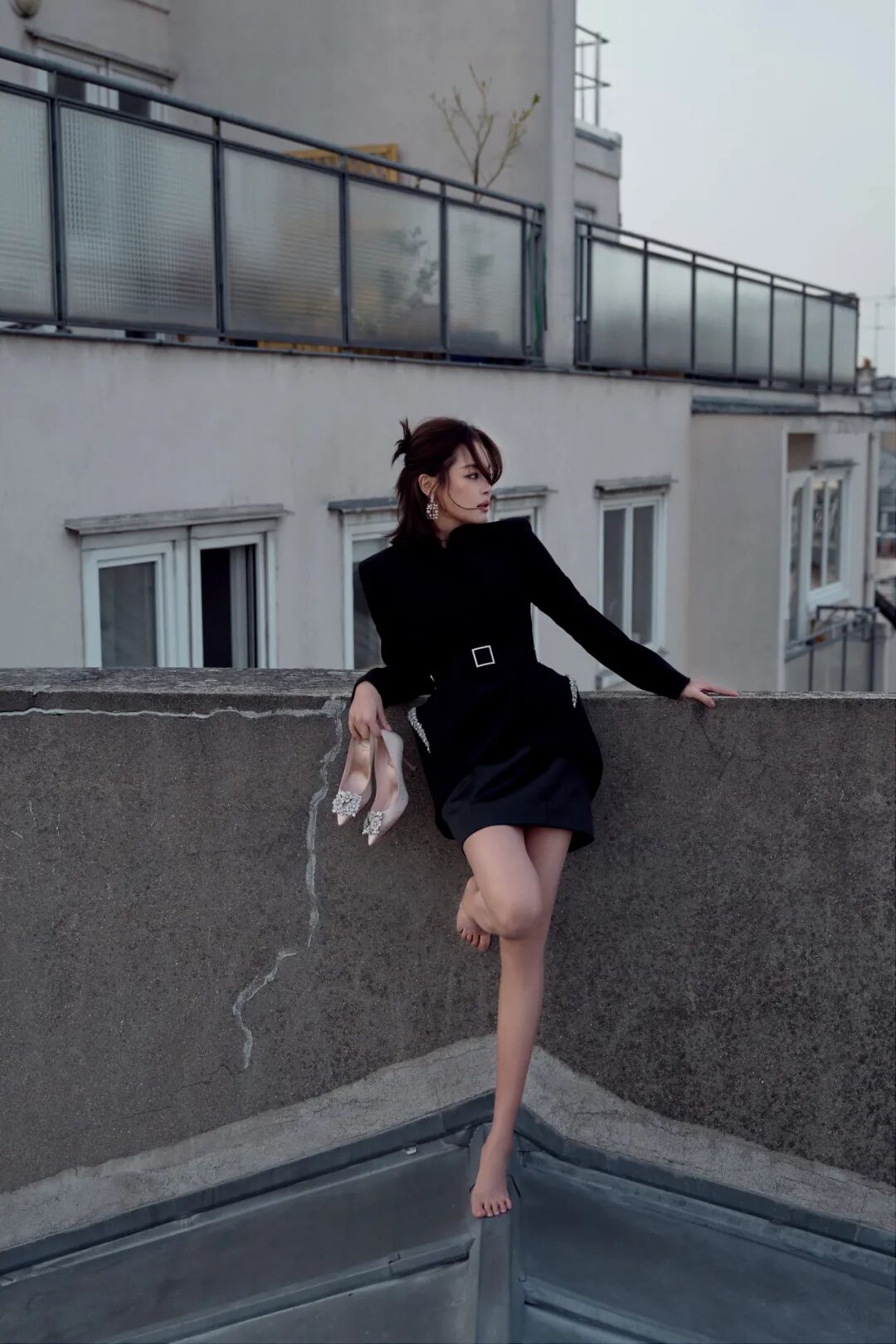 作为全球品牌代言人,辛芷蕾受邀出席了巴黎时装周 Roger Vivier 2026秋冬“CHOC: L'Architecture de la Séduction 魅影构筑”系列预览活动。身穿一条黑色裹身小黑裙,外搭黑色西装,优雅、霸气、气场十足,又有些性感妩媚。出发照选择在巴黎街头和标志性的灰色屋顶拍摄,大大方方“上房揭瓦”,慵懒随性,氛围感立刻就有了。