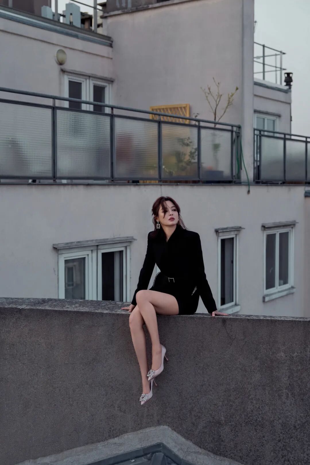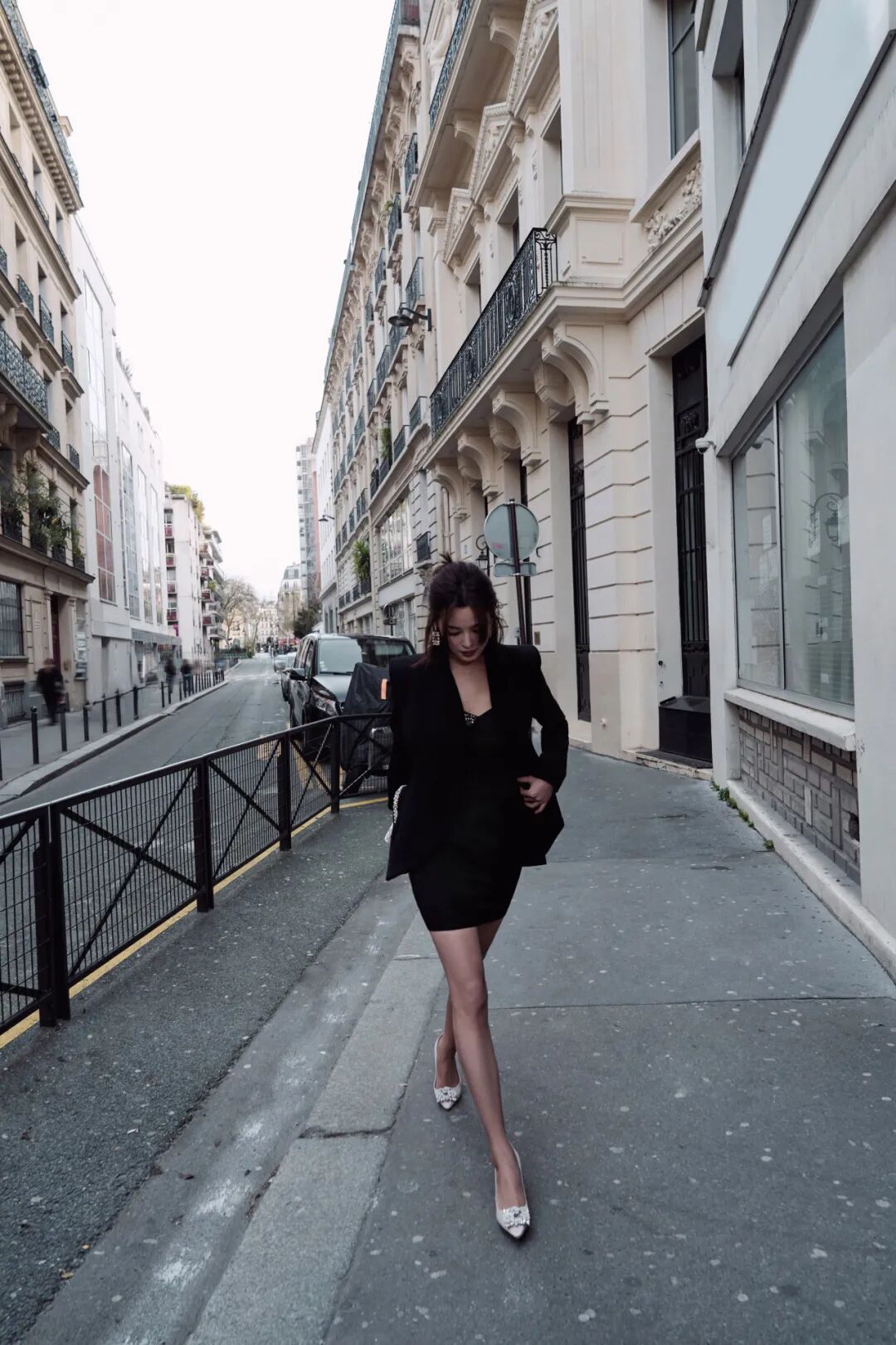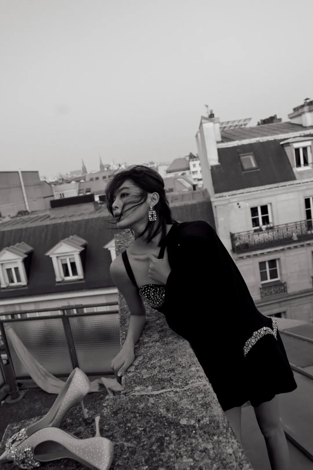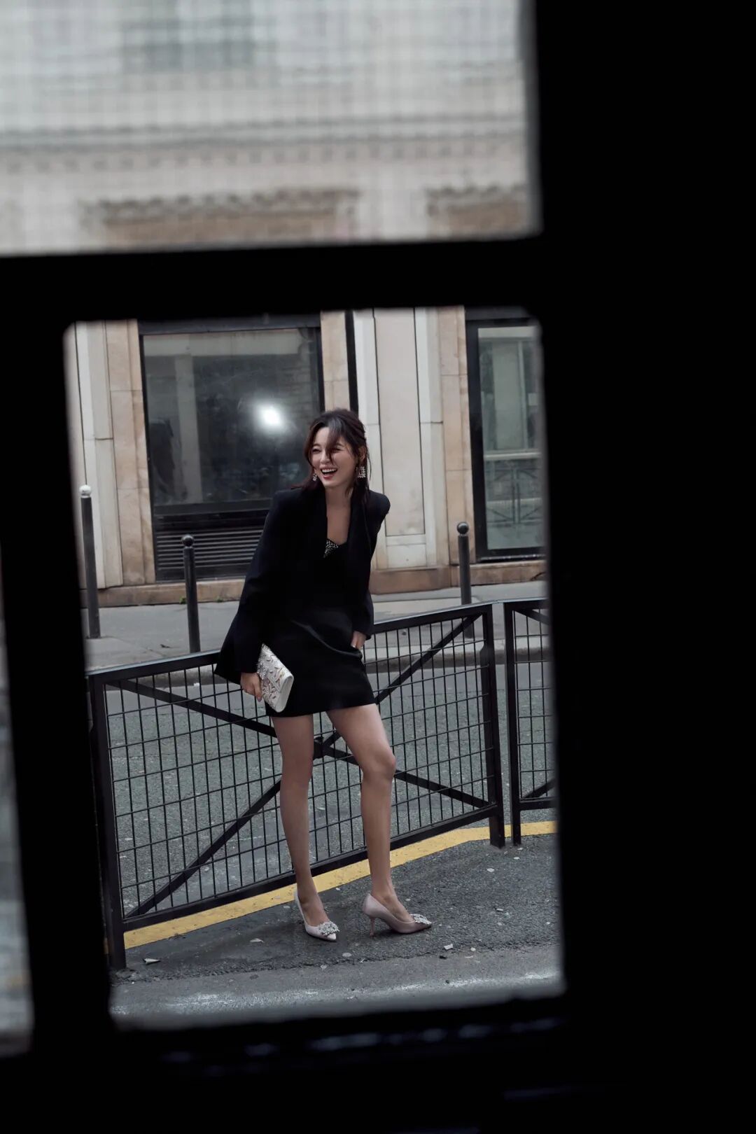 作为全球品牌代言人,辛芷蕾受邀出席了巴黎时装周 Roger Vivier 2026秋冬“CHOC: L'Architecture de la Séduction 魅影构筑”系列预览活动。身穿一条黑色裹身小黑裙,外搭黑色西装,优雅、霸气、气场十足,又有些性感妩媚。出发照选择在巴黎街头和标志性的灰色屋顶拍摄,大大方方“上房揭瓦”,慵懒随性,氛围感立刻就有了。