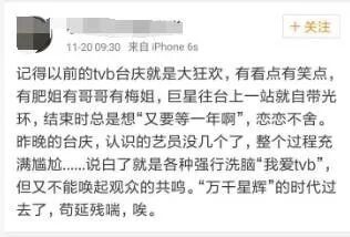 TVB的没落有自身经营不善的原因,另一方面也是内地娱乐产业飞速发展导致的结果。TVB带给我们很多宝贵回忆,祝愿它能推陈出新,越办越好~