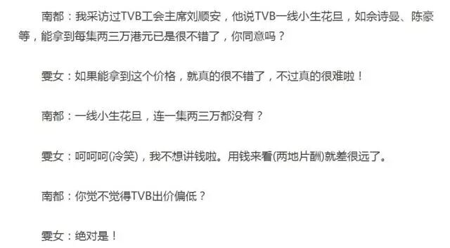 TVB一线小生花旦都拿不到2、3万一集,这是网上流传的内地一线演员片酬表(当然内地片酬也是病态地高)。