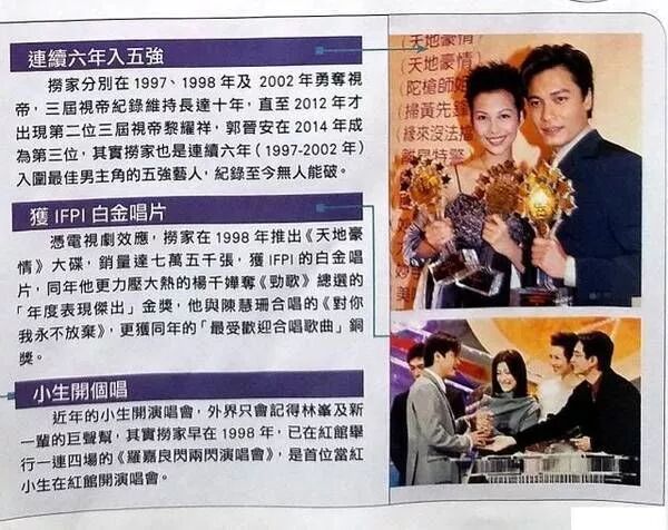 罗嘉良在1997年凭着《难兄难弟》拿下首届视帝,第二年凭《天地豪情》连庄,到了2002年再凭《流金岁月》成为三届视帝,这个记录隔了十年才被黎耀祥打破。不过拿下三届视帝不久的罗嘉良就来内地发展了。