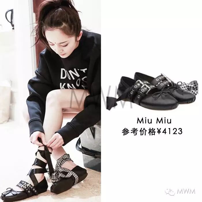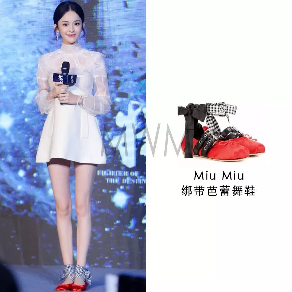 顺便提一句,Miu Miu的绑带芭蕾舞鞋真的很好看,杨幂有一双黑色的。