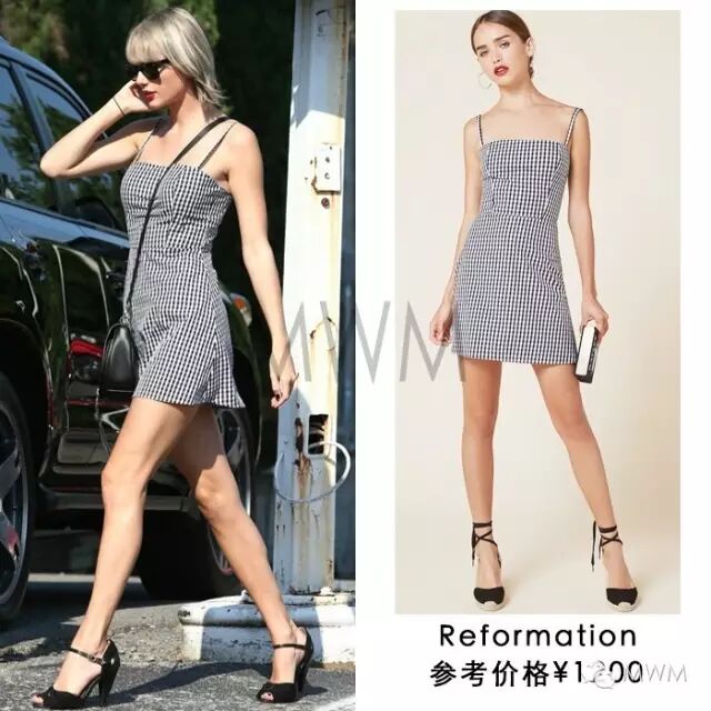 而她穿过细格子连衣裙拍这样的游客照,霉霉今年和抖森谈恋爱的时候也穿过,同样是出去玩的时候呢!