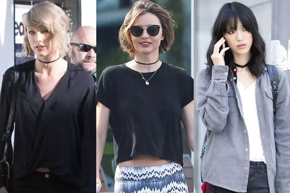 大家都懂的,这种带着一个坠子的choker,也是各路时髦星球人士都人脖十条(对,都不是一条这么简单了)。