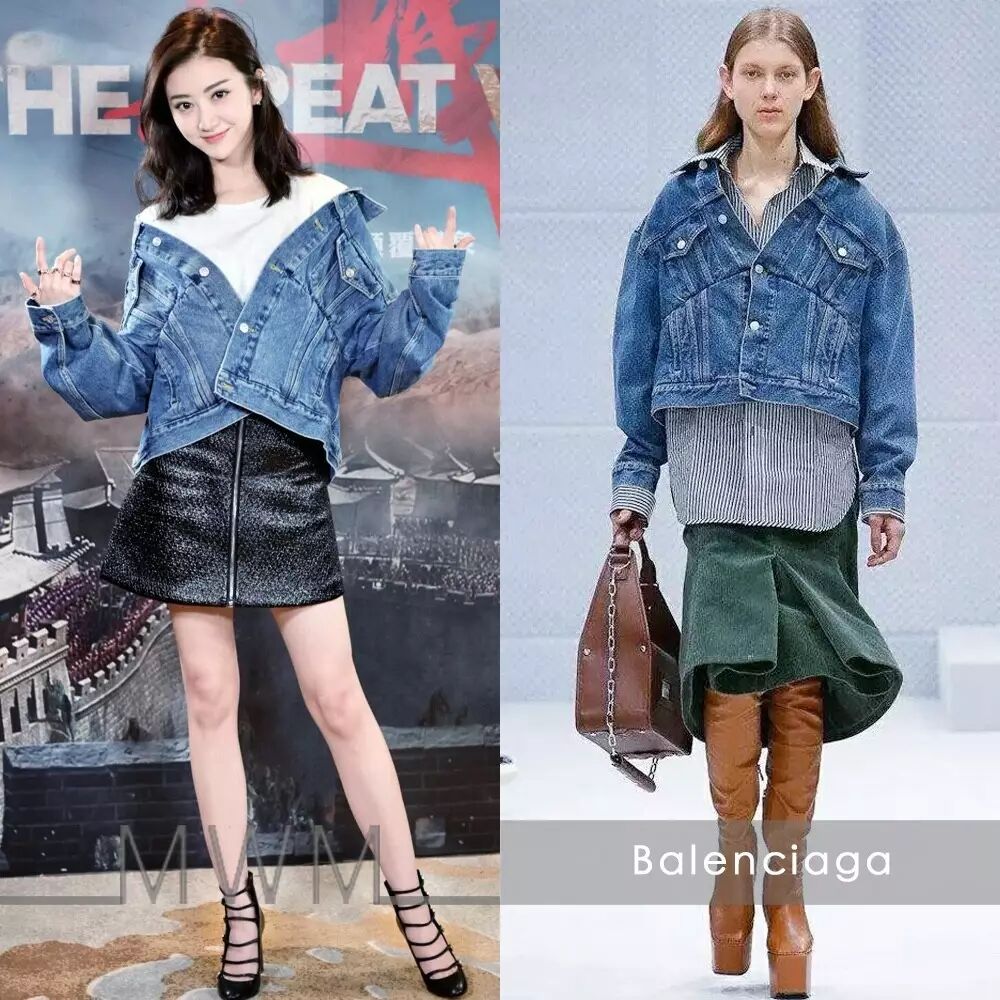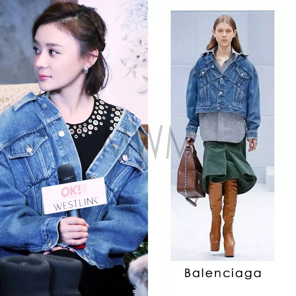 景甜和袁姗姗穿的同一件Balenciaga 2016年秋冬系列牛仔外套,不约而同的露了肩膀……她们是不是不约而同的收藏过王祖贤的贴纸?