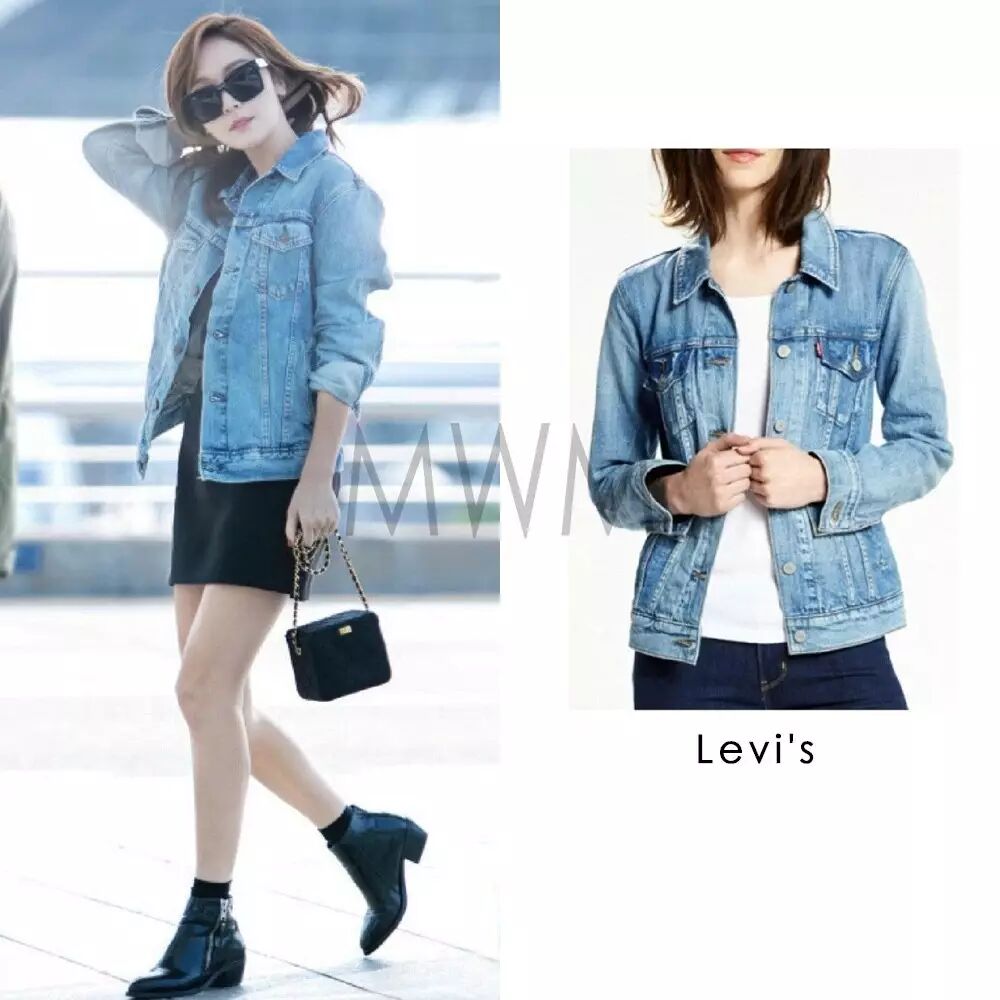 而我们隔壁被王祖贤的美貌深深折服的韩国,也出现过这件衣服。郑秀妍在机场也穿过几次Levi's的牛仔外套。这哪里仅仅是相似,简直和王祖贤当时的牛仔外套,一!模!一!样!