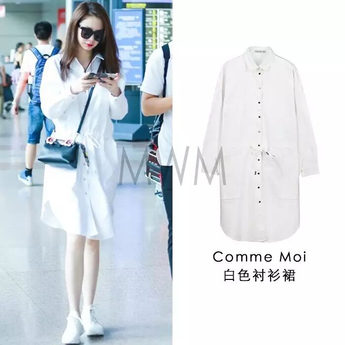 文章开头提到王祖贤去韩国的时候,穿的是一条白色衬衫长裙。