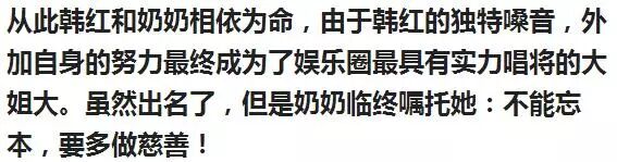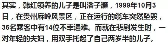 自从跟了韩红后,潘子灏也改名为韩厚厚,为了照顾这个可怜的儿子,韩红还错过了两段婚姻!但是她并不后悔,因为她说只要做到问心无愧就足够了!