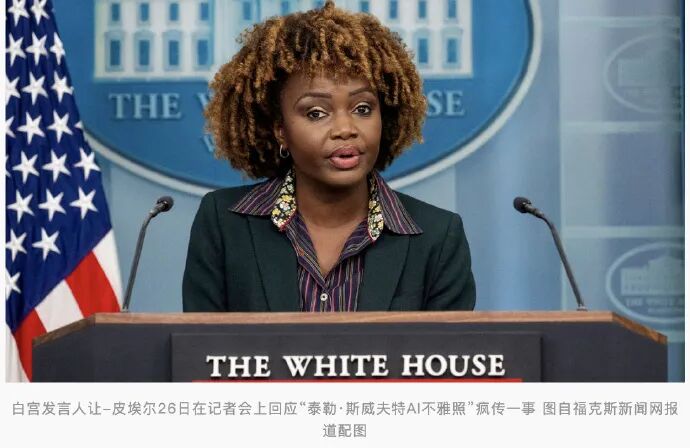 在26日白宫记者会上,发言人让-皮埃尔被问及此事时表示,“我们对此类图像流传感到担忧,更确切地说,是虚假图像,这令人担忧。”