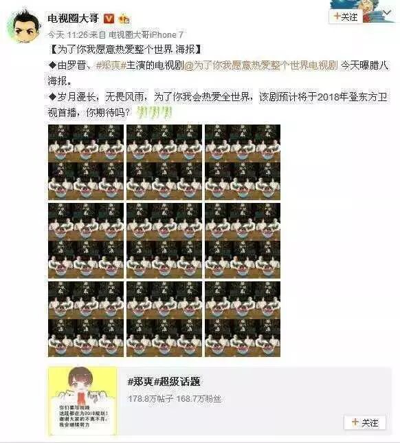 最近由郑爽和罗晋主演的新剧《为了你我愿意热爱整个世界》就快要播出了,不过这次湖南卫视并没有抢到剧本,将会在东方卫视进行播出,为此网友们都表示很开心。