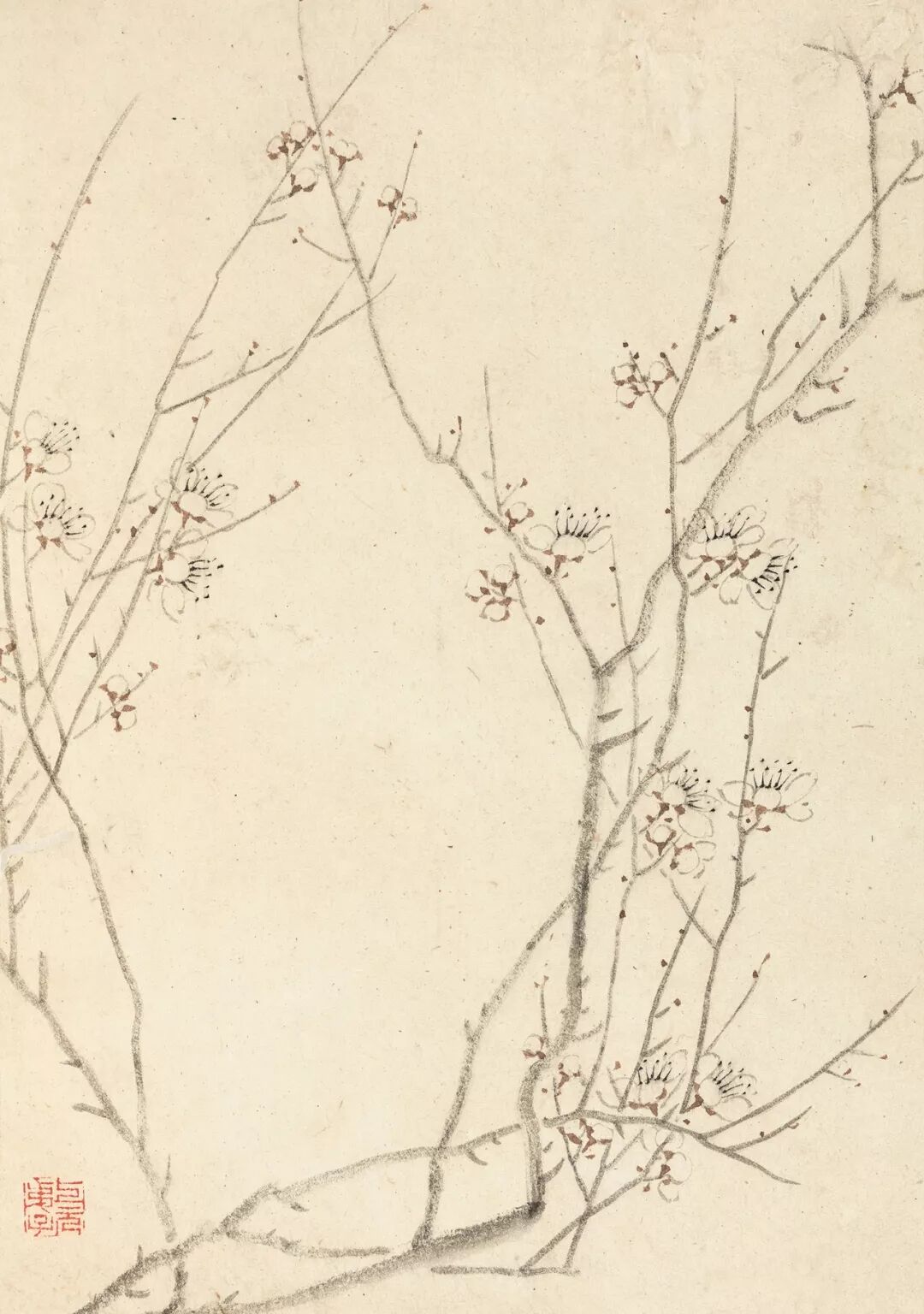 题跋:1.乍展梅花册,如瞻鸾鹤群。横斜饶古致,缥缈点寒云。香放江干蚤,根从岭北分。含豪得天趣,清味总输君。笥河学人朱筠题。钤印:竹君(白)