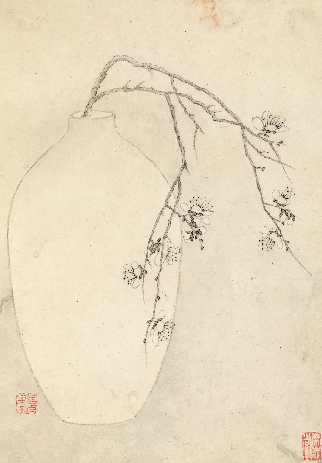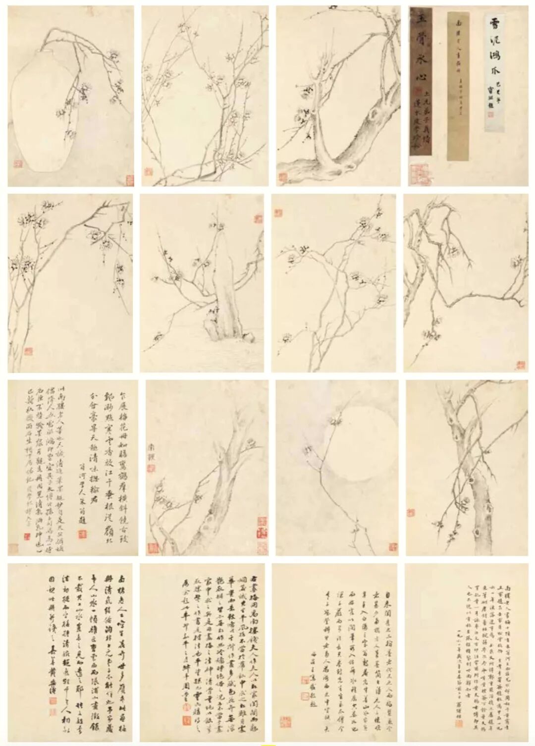 签条:1. 雪泥鸿爪,己巳(1929)冬,宝熙题。钤印:臣宝熙(朱白) 2. 南楼老人画梅册。贞松堂秘藏。甲品。 3. 玉骨冰心。上元弟子真迹,莲水后学珍秘。钤印:人手青(白)