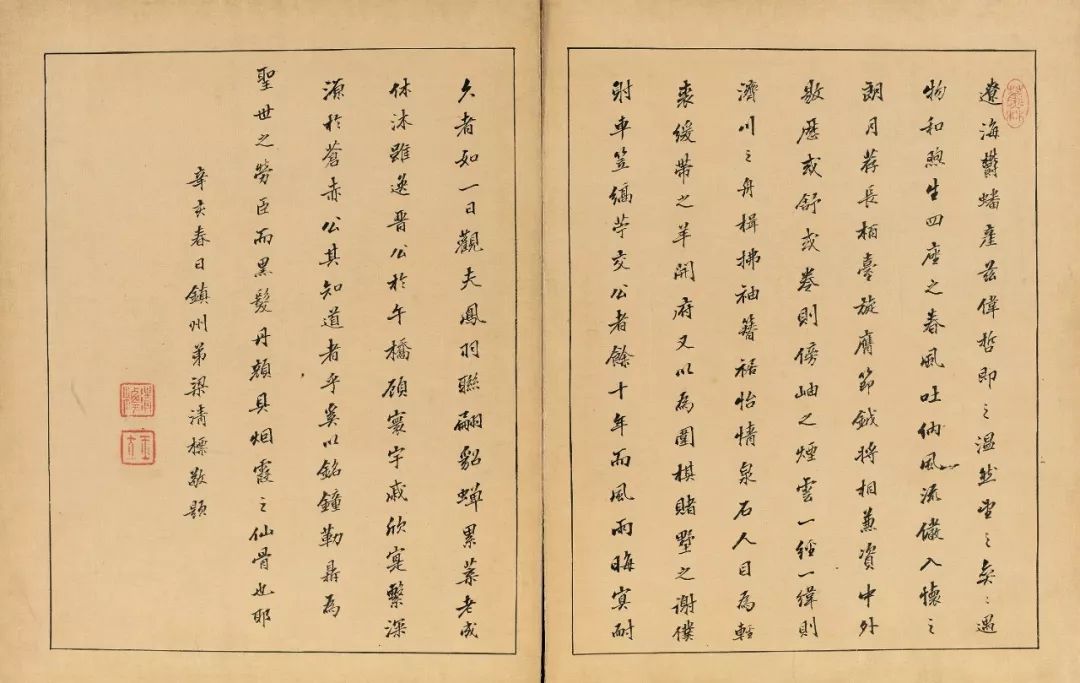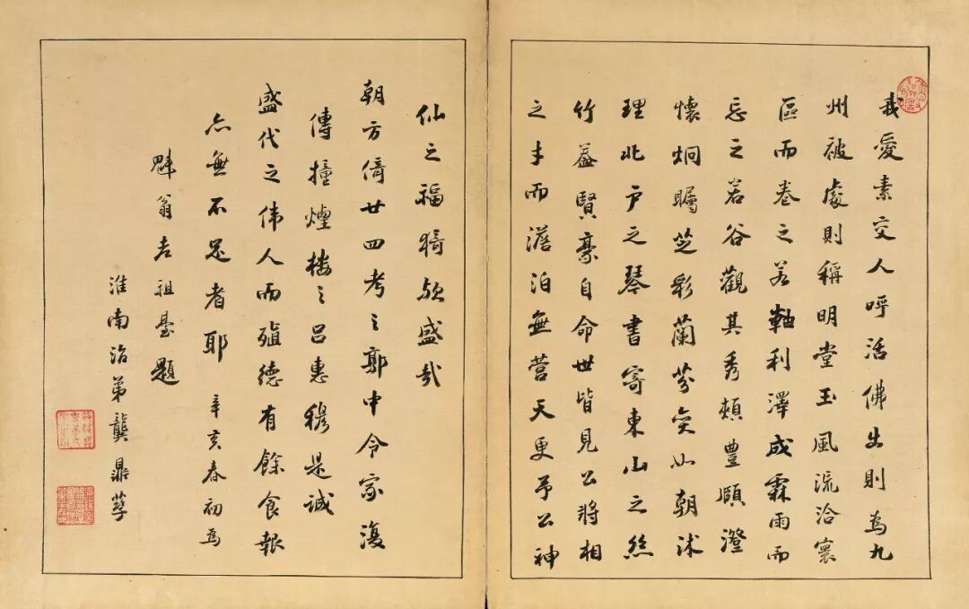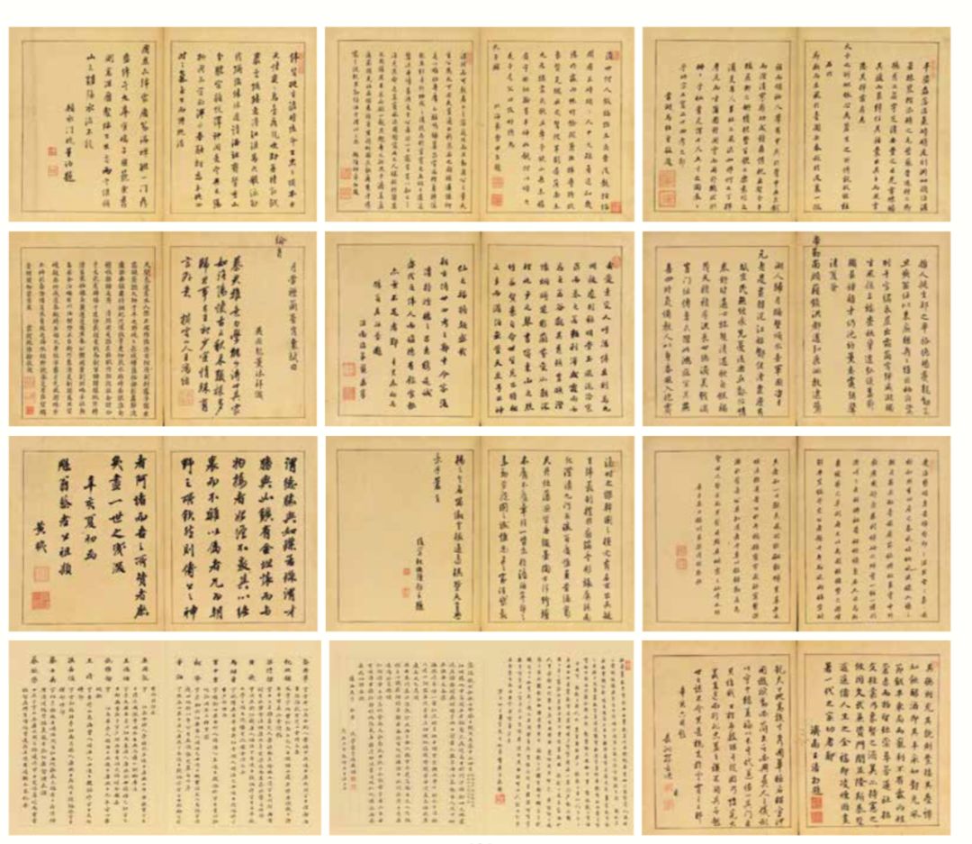 册页末页有梦寐丹心、江氏元卿、燕山主人、桐华馆书画章四枚鉴藏印,其中“桐华馆书画章”,“桐华馆” 即金德舆(1750-1800),字鹤年,一字少叔,号云庄,一号鄂严、少权、仲权。浙江桐乡人,金檀从孙。嗜读书, 考求金石图史,收藏名人翰墨,兼工书画。金德舆出身商人世家,他家建有桐华馆,收藏有大批的法书名迹及宋刻 本,是乾隆时代浙江著名的藏书楼。