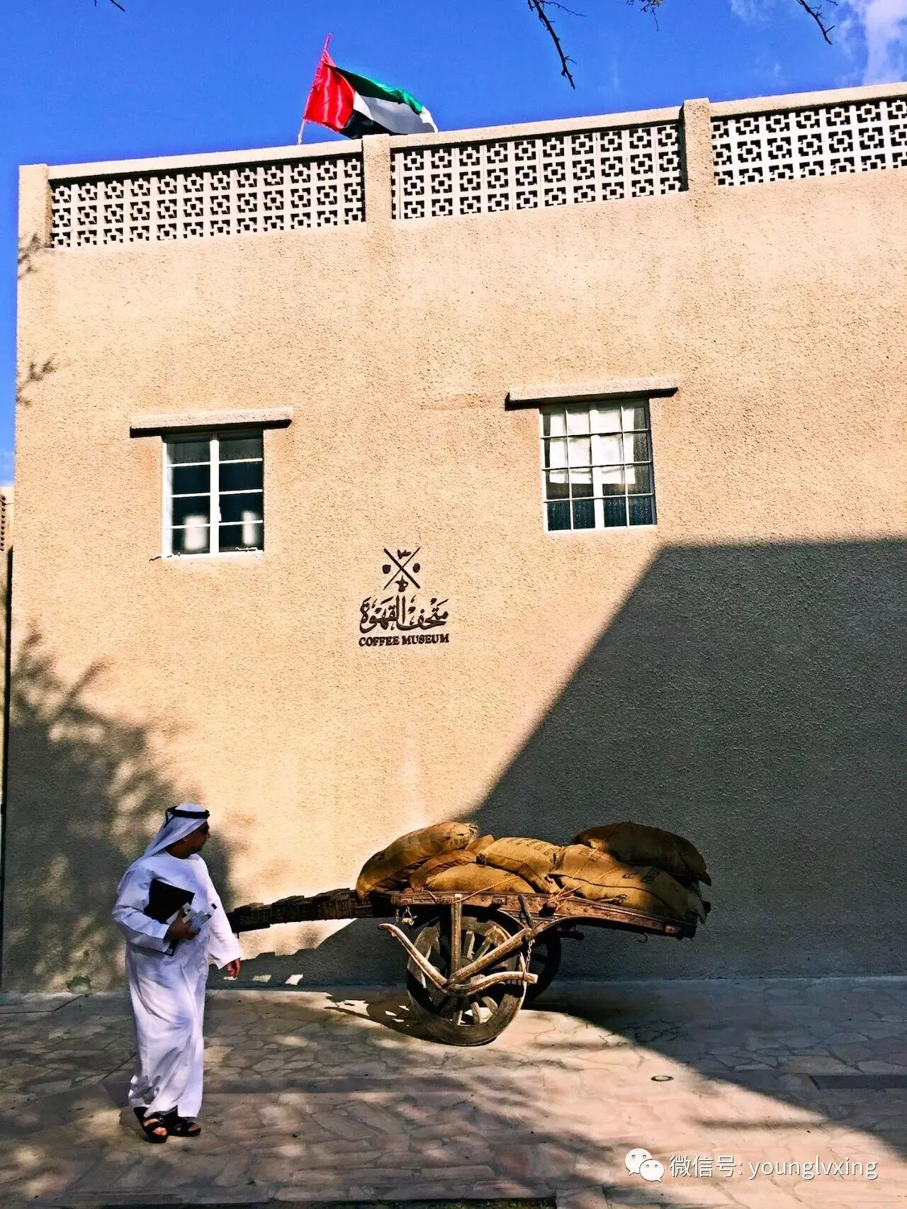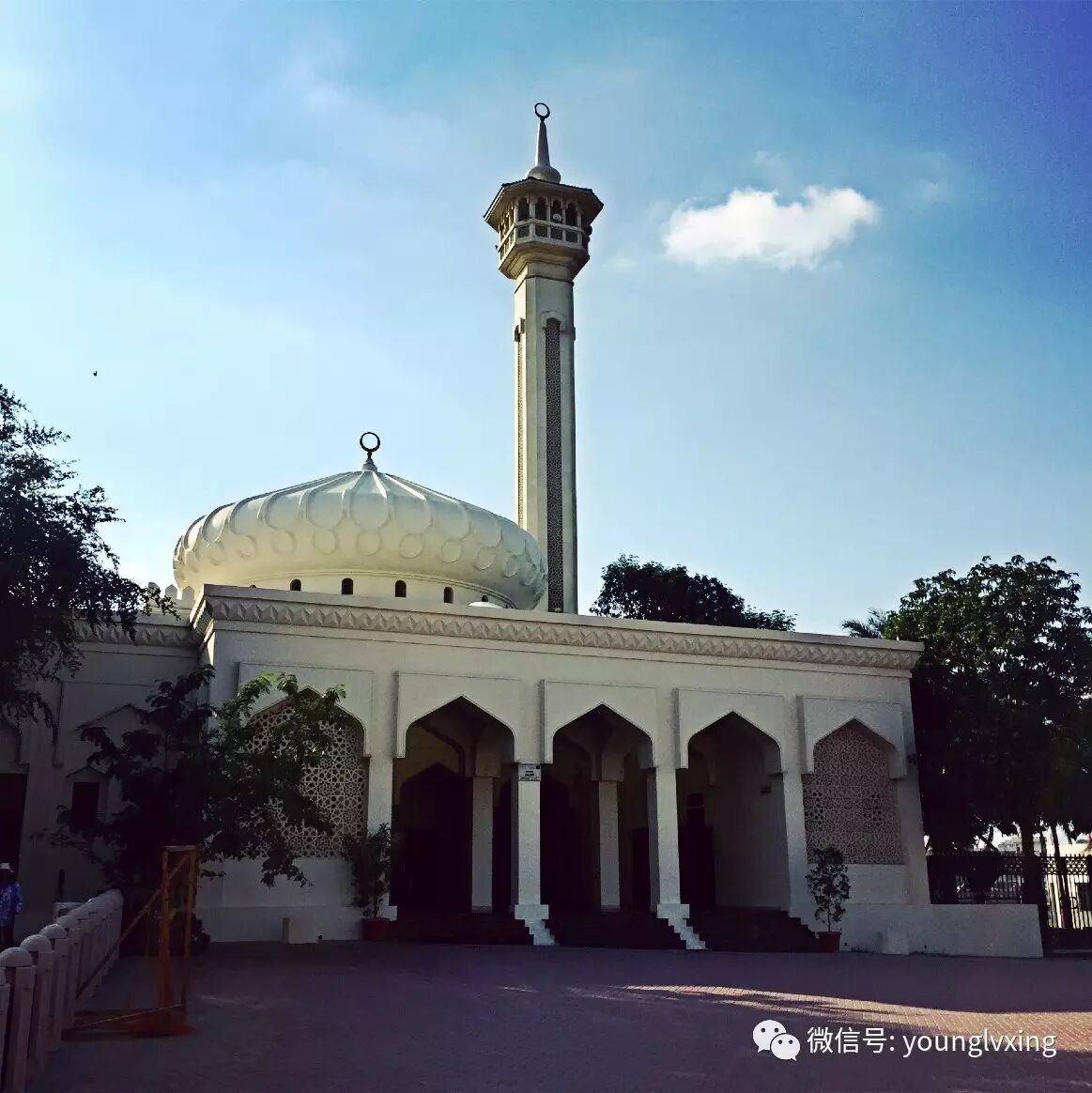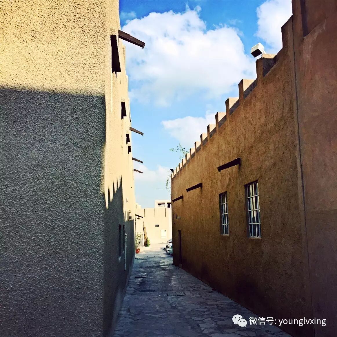 河边的巴斯塔基亚老城(Bastakiya Quarter),房顶留存着早期的“阿拉伯式空调”风塔,中空的风塔可以驱散沙漠里的燥热。老城如今已经改成精致的咖啡馆、餐厅和画廊,还有一些售卖稀奇玩意的小店。徜徉在巴斯塔基亚老城迷宫般纵横交错的窄巷,发黄的毛石墙极具怀旧气息。落幕时分,圆顶尖塔的清真寺传来宣礼声,悠远绵长,给人肃穆而宁和之感。
