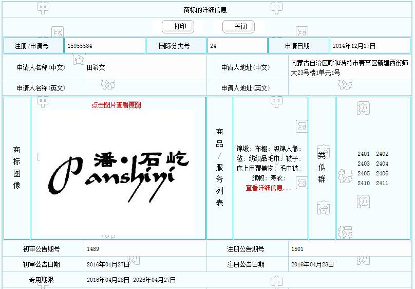 只可惜,唯独第24类的“潘石屹panshiyi”商标被他人在先注册,不属于抢注,现在还没挽回回来。不过,潘石屹的保护商标意识还是特别值得企业家学习,关键是人家不差钱。