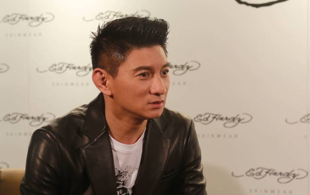 身着ED Hardy 的男神吴奇隆接受了记者采访