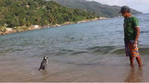 拉斐尔老人无意中发现有一只小企鹅卧在石头上,他便将其带回家悉心照料。待小企鹅恢复健康之后,拉斐尔老人就将它放归大海。几个月后,小企鹅再次回到了小岛上,并且认出了拉斐尔老人,跟着他一路回到了家。现在,丁丁每年都会跟老人在一起呆8个月,其他时间就游回大海,每次小丁丁重返拉斐尔老人身边,都要游大约5000英里(约为8048千米)。