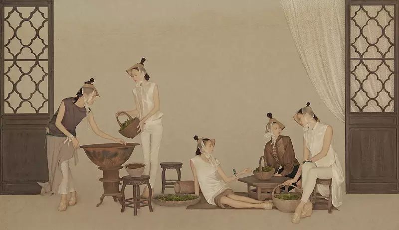 于是,他开始了“大冒险”。先用相机拍下画面,然后再将其转换为黑白影像,再用工笔画技法,一点一点对照片进行手工上色,层层渲染。于是《茶经》就这样诞生了。