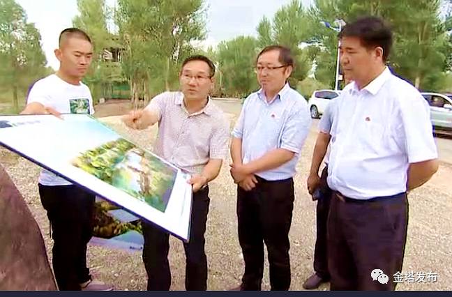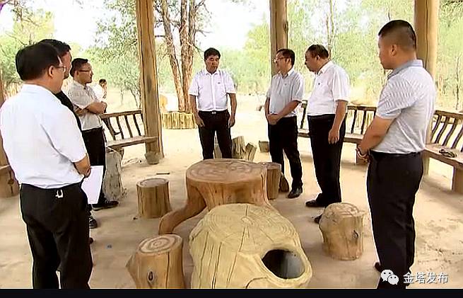 在胡杨林景区,方学贵通过实地查看,初步确定了《胡杨赋》石碑的建设位置。方学贵指出,《胡杨赋》石碑是对胡杨精神的宣扬,也是让游客膜拜胡杨精神、加深对金塔胡杨林认知的一处景观,要求胡杨林景区在建设过程中要结合实际,邀请合适的书法名家进行书写雕刻,既展现出《胡杨赋》石碑的大气,也要充分体现出胡杨精神;同时要在石碑背面雕刻“共植胡杨 共享绿色”倡议书,倡导人们种下一棵胡杨,洒下一片绿荫,传递一种精神。