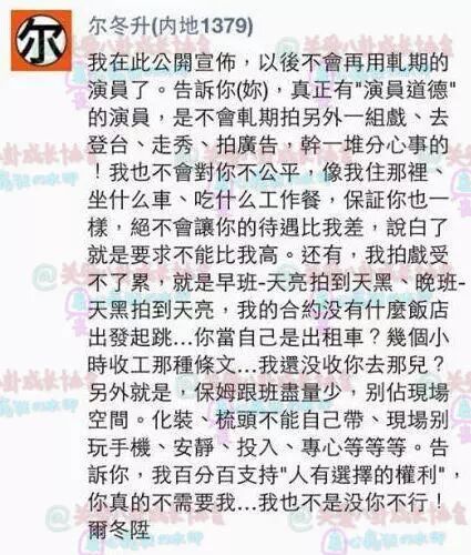 之前香港导演尔冬升就在朋友圈里公开喊过话,“以后不会再用轧期的演员”,注意尔冬升导演的用词,是轧期,不光是轧戏,“去登台、走秀、拍广告”都属于“分心事”。