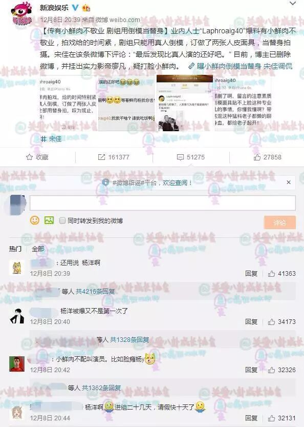 然后新浪娱乐昨晚把这个当娱乐新闻发了,万万没想到转发16万留言5万啊,提前完成了新浪娱乐的全年KPI(围笑)。