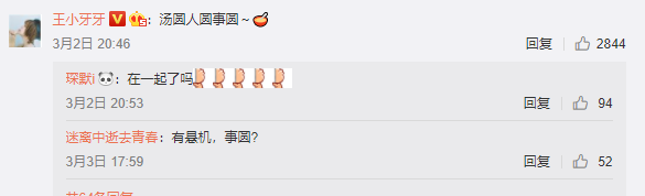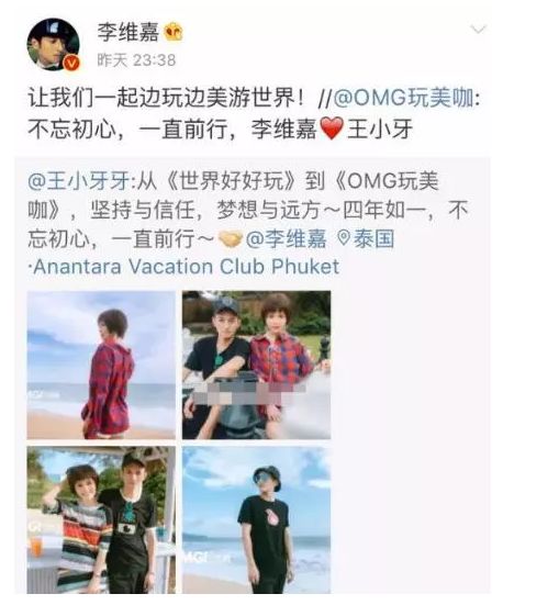在此之前王小牙也在维嘉的微博了点了一个赞,但是这个内容看起来很暧昧啊