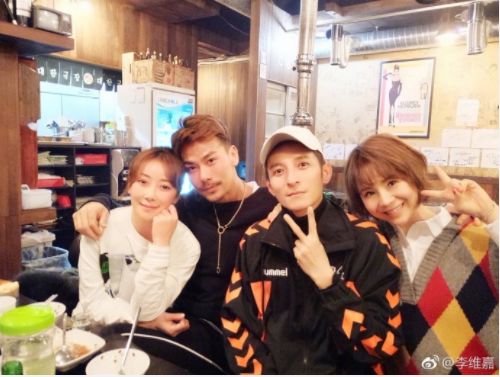 二人除了在微博上的互动以外,在节目中的互动更加亲密。两人一起参加了一档美食节目,在合照的时候,维嘉甚至是把手放到了她的肩上。
