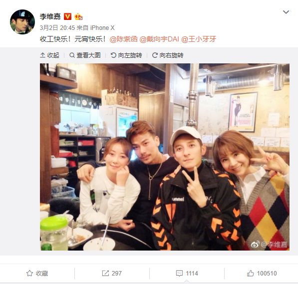 虽说官方解释是节目宣传,但是单从微博内容来看,很像是公开恋的说法啊!在女方发出微博之后,维嘉也有转发。