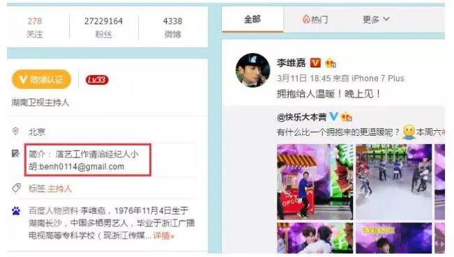 爆料人还说这个经纪人骗钱、骗车还劈腿(有一个宋喆?),于是充满“正义感”的网友开始扒这个维嘉的前经纪人。终于在维嘉的微博上找出了他的联系方式