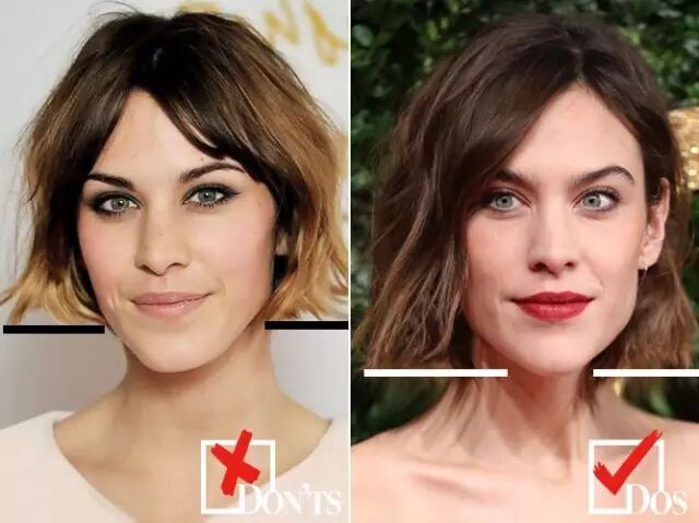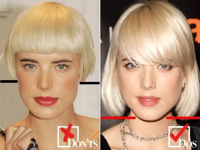 超模Agyness Deyn的长方脸型,在盖耳短波波的衬托下,劣势尽显(过厚齐刘海儿也非常不自然);但将发尾延长至下巴水平线后,脸型在视觉上好像被压扁了些,就连五官都因此变得更和谐、更好看。▼